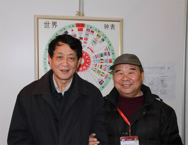 全国地理教育学会秘书长,安徽省教育科学研究院院长阚智参观展览并同发明家毛方明合影
